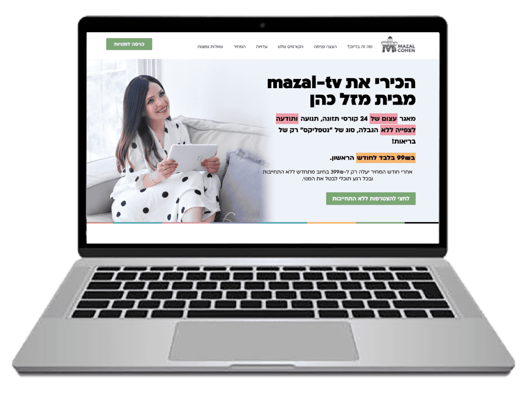 כל הכלים והשיטות שתקבלי במסגרת מנוי ל- mazal-tv מרגע ההצטרפות שלך, הכל זמין, נגיש ופתוח עבורך, מכל מקום בארץ ובעולם, 24 שעות ביממה, 7 ימים בשבוע
