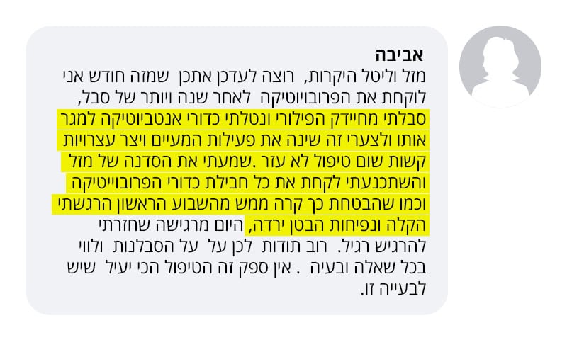 אני אחרי שנה של שימוש בפרוביוטיקה יצאתי לגמרי ממחלת הכבד.