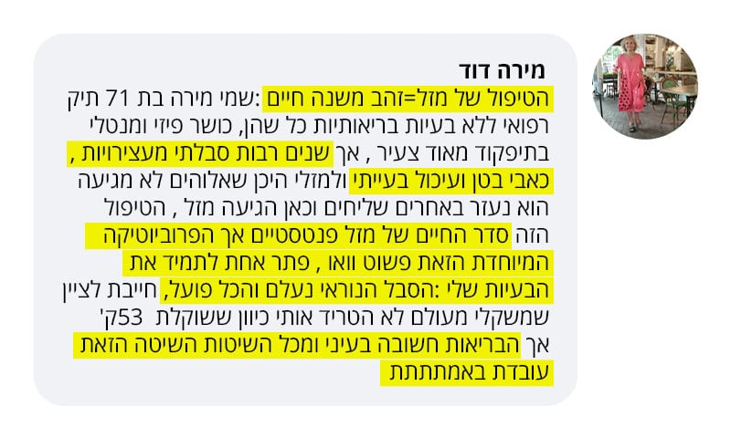 אז אם את סובלת מחילוף חומרים תקוע, בטן נפוחה, תקיעות במשקל, גזים ועוד… זה לא חייב להיות כך, אני כאן כדי לעזור לך, זה הייעוד שלי!
